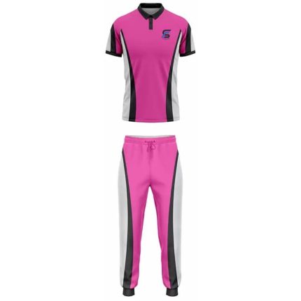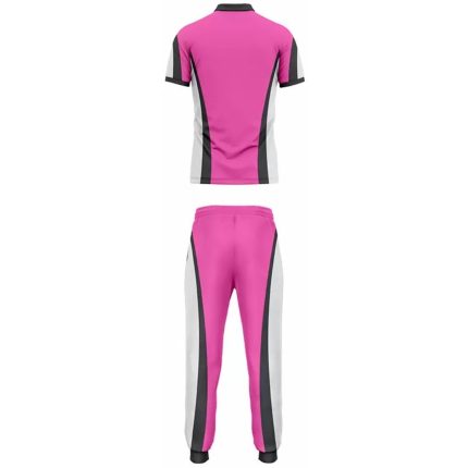 Discover premium bowling uniforms from Fitterland Sports, the leading manufacturer of high performance bowling kits designed for champions. Fitterland Sports Hot Pink Cut & Sew Bowling Uniform! Our premium two-piece bowling team set features a vibrant hot pink short-sleeve polo shirt with black collar, striped cuffs, and matching track pants with white side panels. Custom cut & sew bowling jerseys by Fitterland Sports ultimate style, comfort, and performance for bowling teams.