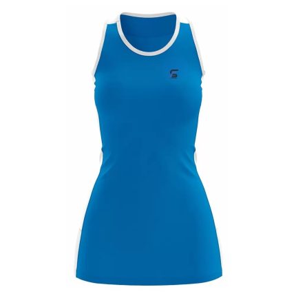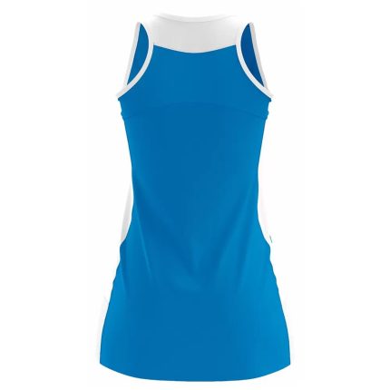 Discover premium netball uniforms from Fitterland Sports, the leading manufacturer of high performance netball kits designed for champions. Fitterland Sports netball uniform in vibrant bright blue dress features crisp white trim, bold vertical side stripes, and a classic shield emblem. Custom made with superior stitching, perfect fit, and durability the ultimate custom netball dress for teams demanding style and performance.