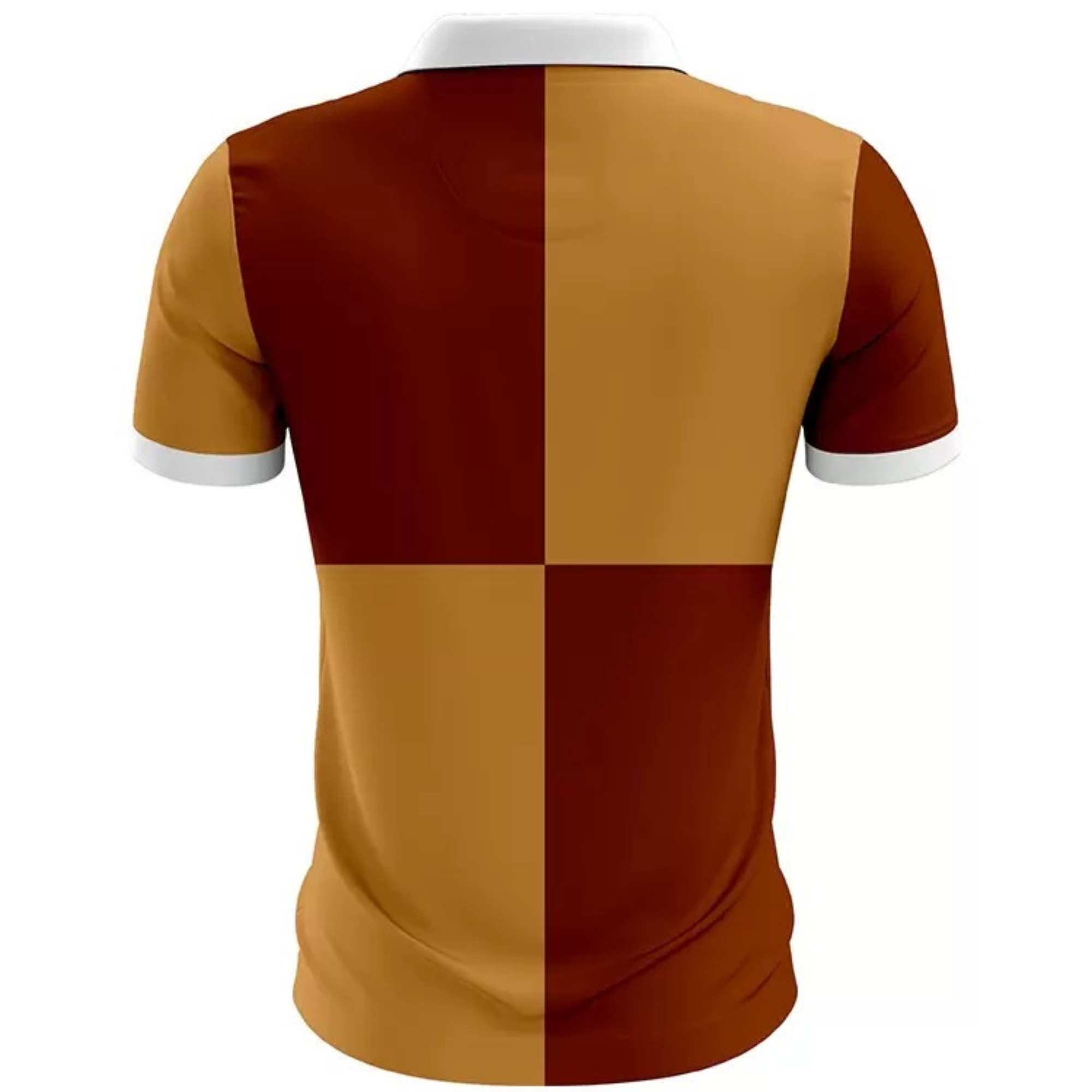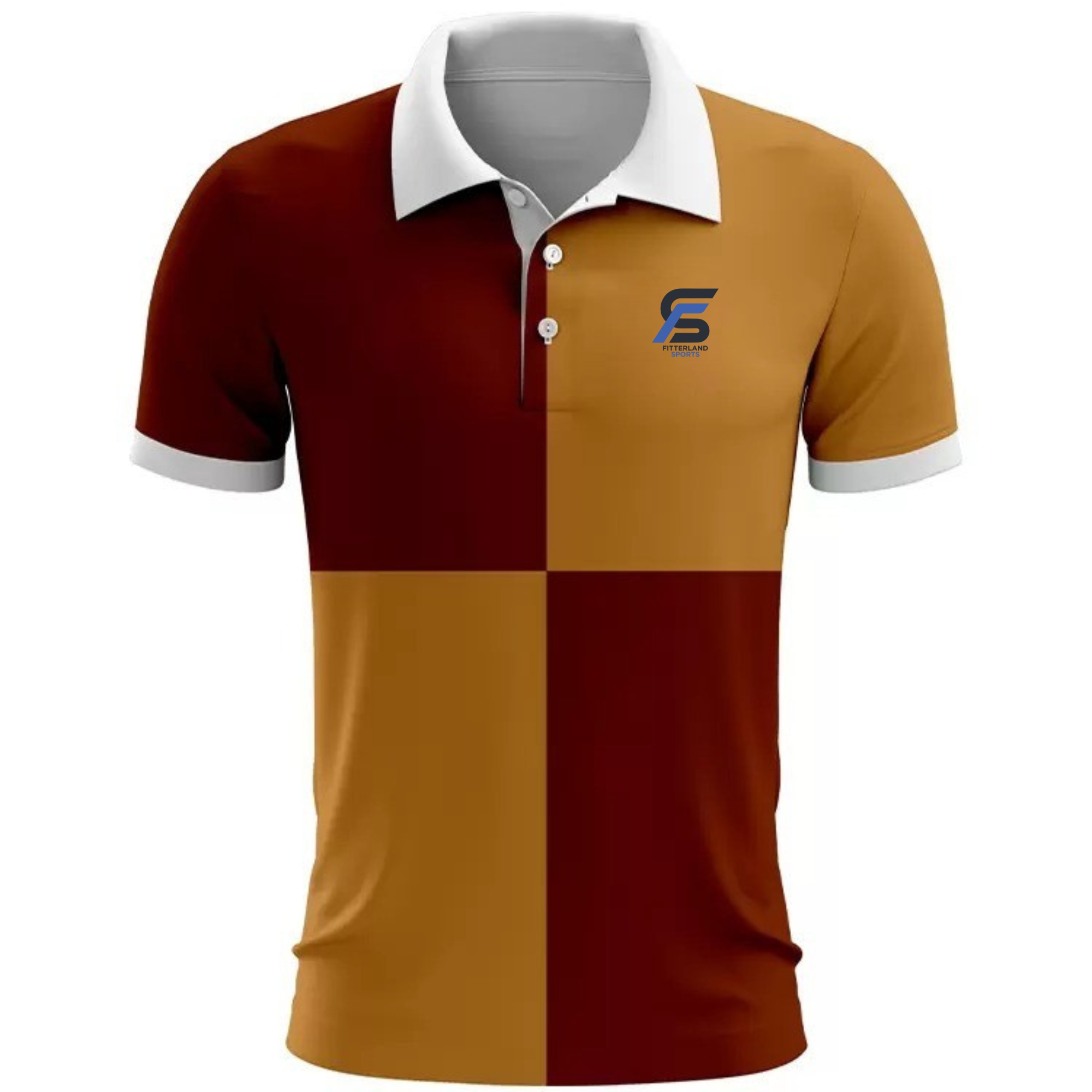 Fitterland Sports, a premium golf uniforms manufacturer, presents its signature white jersey. Fitterland Sports white sublimation golf polo uniform features a bold horizontal mid-section band exploding with green, lime green, and black geometric and zigzag patterns that demand attention on the course. A dark shield-shaped logo on the upper left chest adds sophisticated team branding, while subtle horizontal textured lines on the lower half create depth and movement. The classic two-button placket and clean collar maintain traditional golf style while delivering performance through Fitterland Sports’ industry-leading dye-sublimation process.