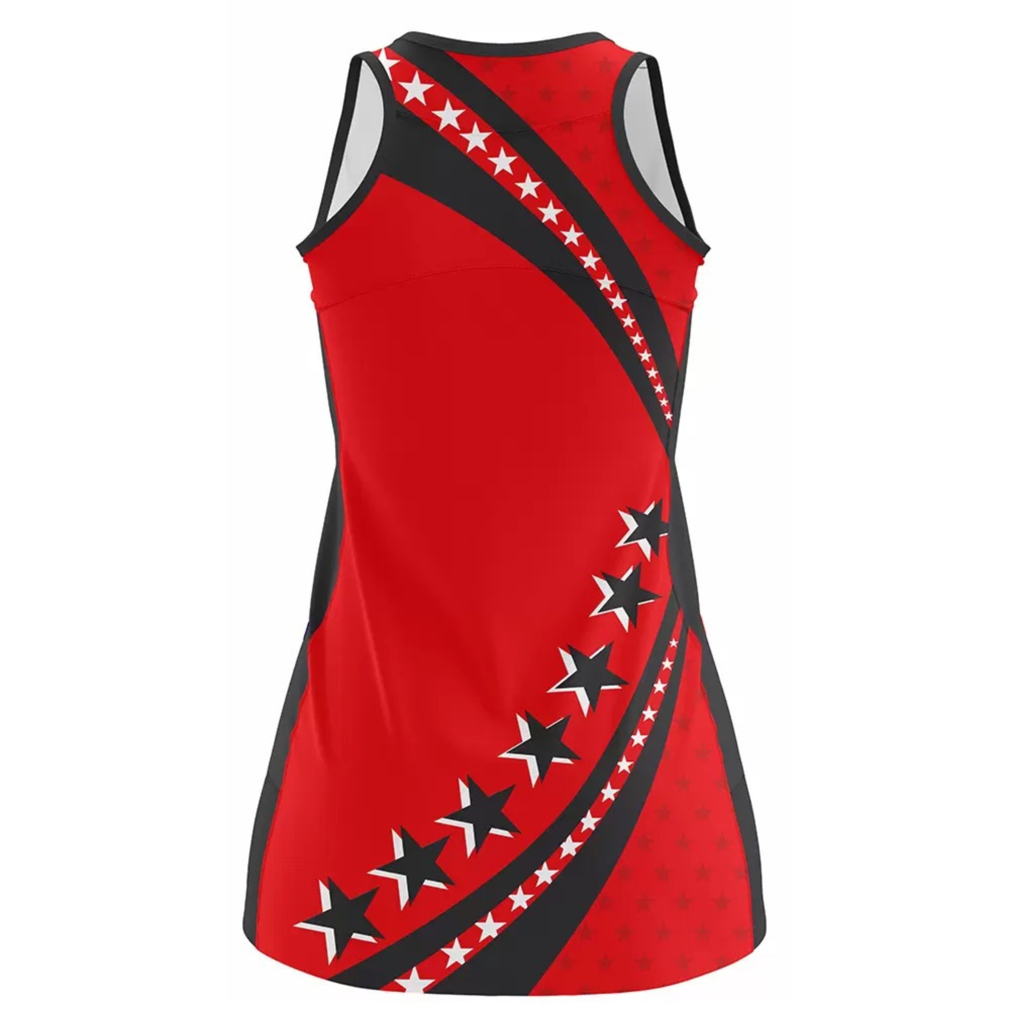 Fitterland Sports, a premium netball uniforms manufacturer, presents its signature blue uniform. Fitterland Sports uniform a stunning bright blue sleeveless athletic dress engineered for champions. Crafted using premium construction, this netball dress combines timeless design with unbeatable comfort and durability. The vibrant bright blue base is accented by crisp white trim along the round neckline and armholes, while bold white vertical stripes down each side create a slimming, dynamic look on court.