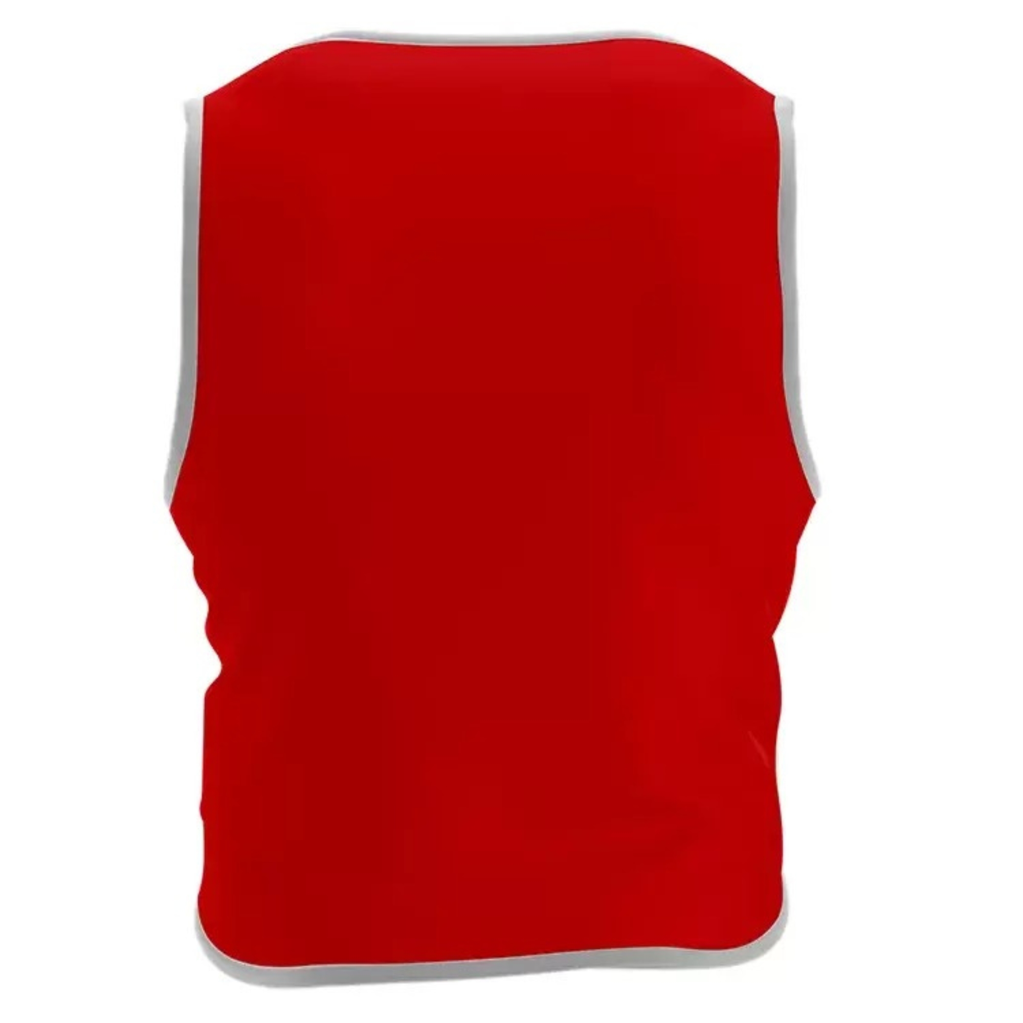 Fitterland Sports, a premium sports bib manufacturer, presents its signature red and white bib. Fitterland Sports’ excels in custom cut-and-sew manufacturing, delivering high-quality athletic apparel like this sleeveless top designed for peak performance. The bold red and white color scheme features alternating horizontal stripes that create a dynamic visual impact, complemented by a thick white stripe across the chest for added emphasis. Crafted from a premium smooth and stretchy fabric, this jersey offers excellent moisture-wicking properties and flexibility, making it ideal for intense team sports activities.